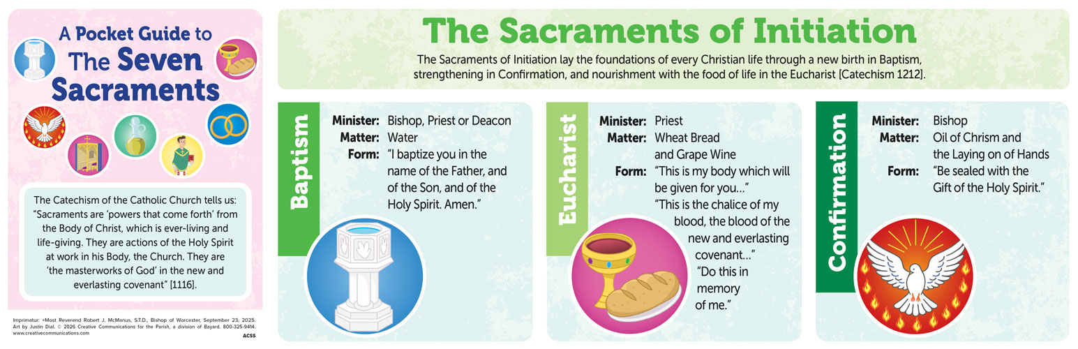 This colorful and compact pocket-sized guide to learning the seven sacraments folds in four to fit in pockets and purses. When it is unfolded, colorful illustrations and easy-to-understand explanations of the sacraments are revealed in a straightforward and thoughtfully organized way. This handy activity sheet is a useful tool for all who want to learn more about the sacraments.