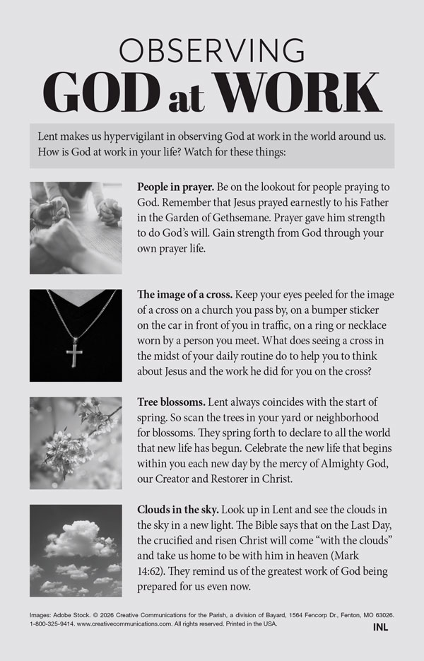 This Lent insert helps us to see God at work in this holy season as we look at our lives in the shadow of the cross.